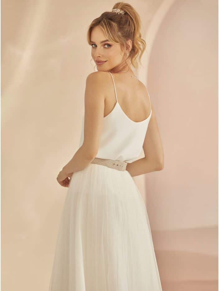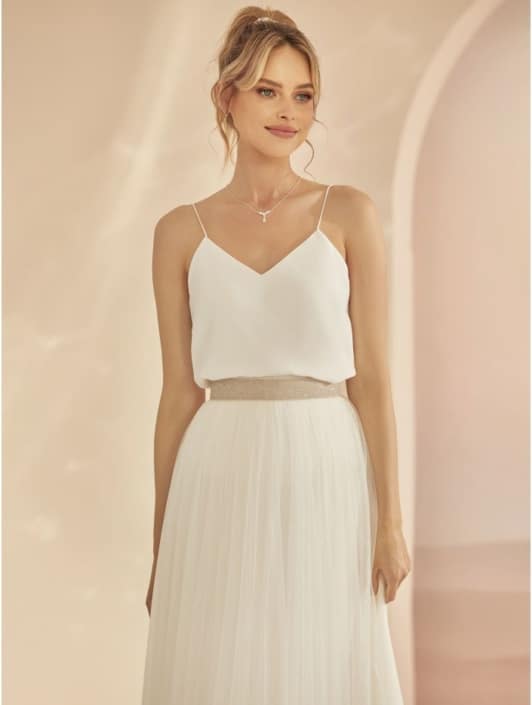 Hochzeitslook. Bestehend aus einem separaten Oberteil und Rock, vereint dieses Konzept